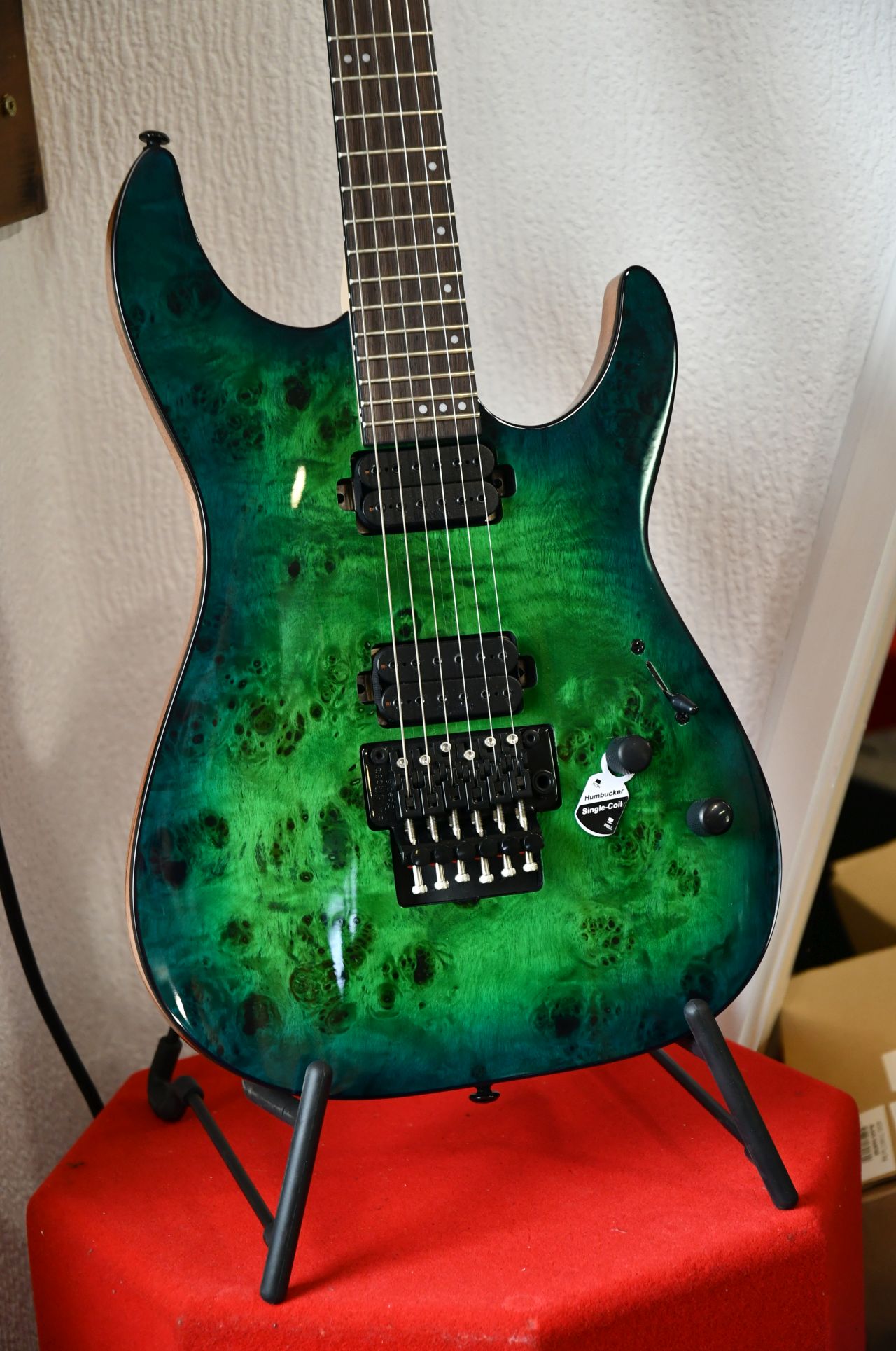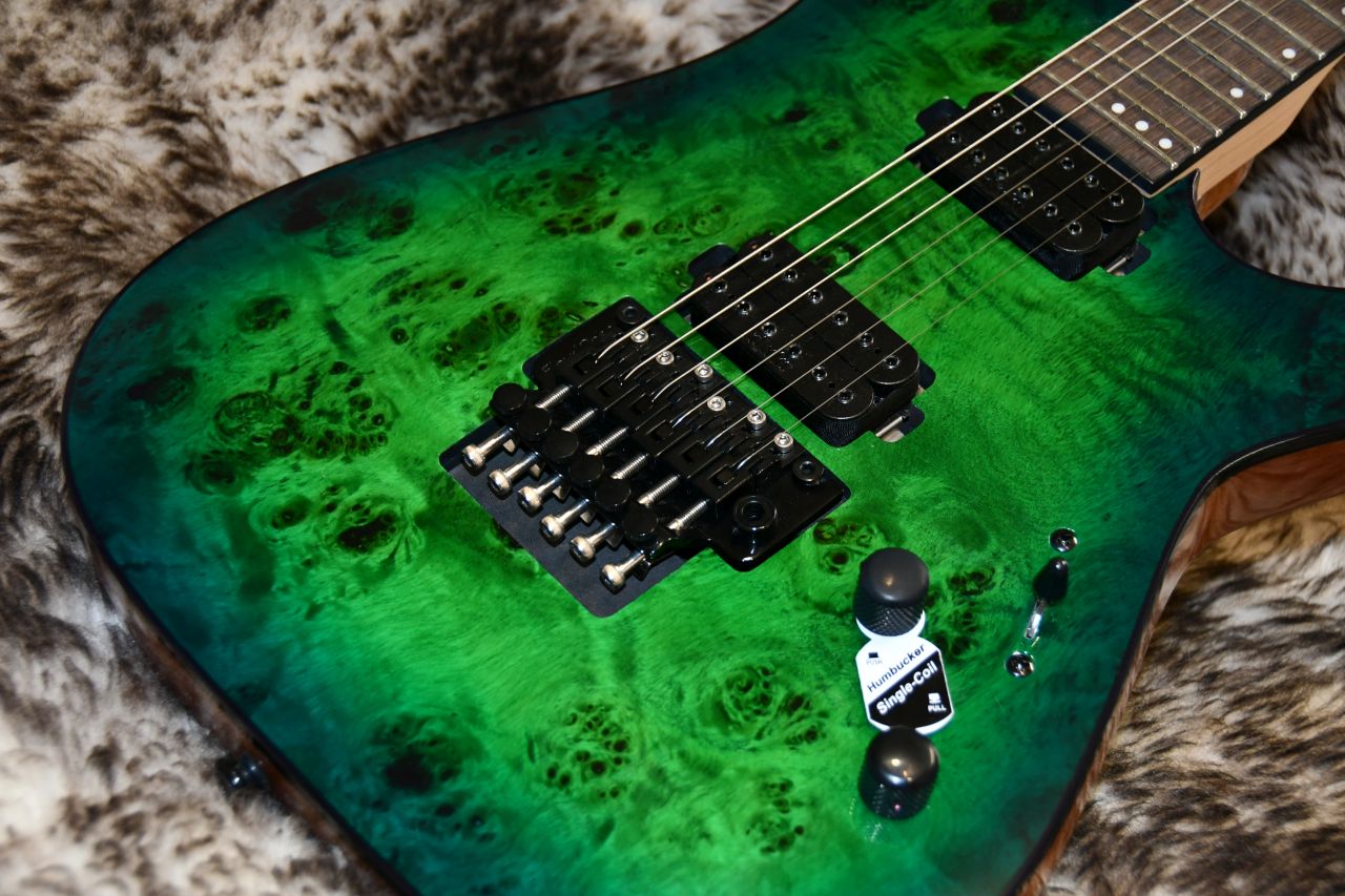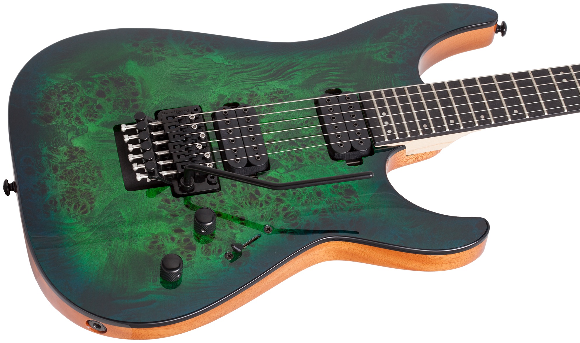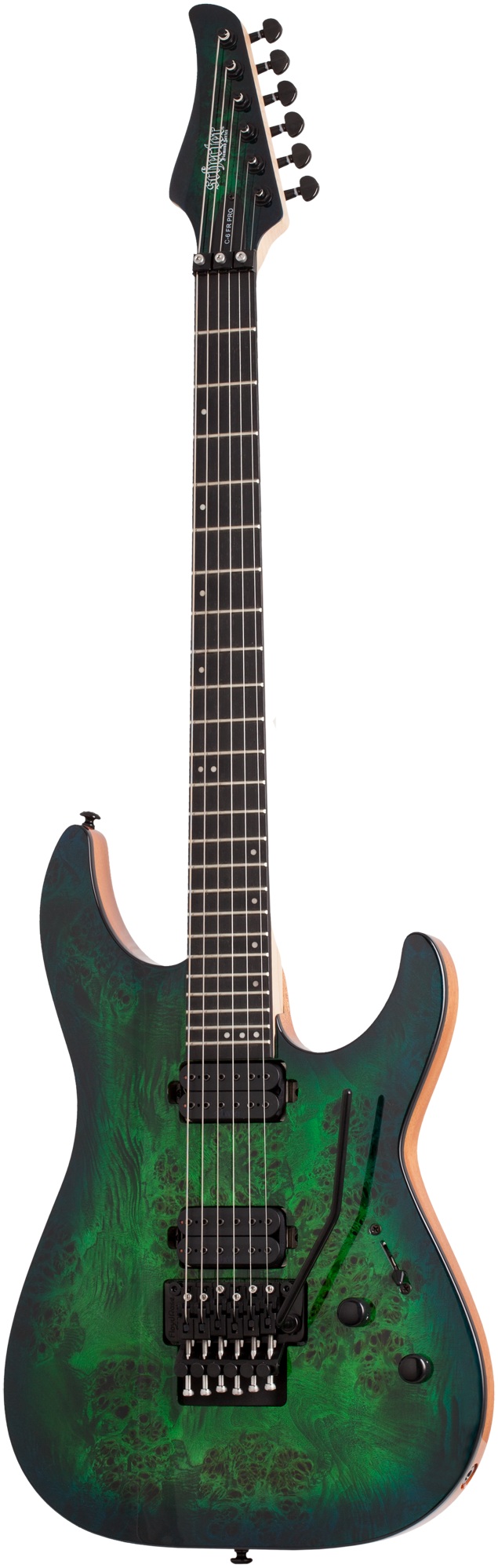Die C-6 Pro verfügt über die neuen Decimator-Pickups, die an die US Custom Shop Apocalypse Pickups angelehnt sind und damit für unglaubliche Soundflexibilität sorgen. Die aufwändigen transparenten Finishes auf der Burl-Decke sorgen für eine atemberaubende Optik und der Mahagony-Korpus mit geschraubtem Ahorn-Hals sorgt für einen warmen Grundsound mit ausreichend Attack. Das Schecter-Exklusive Floyd Rose Special "Hot Rod" Tremolo wertet die C-6 Pro noch weiter auf - getreu dem Motto "Best Bang for the Buck".