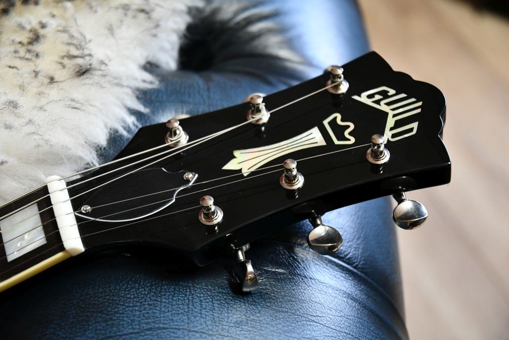 Der Bluesbird spiegelt die Rückkehr von Guild zu einem weiteren historischen Solid-Body-Modell wider. Ursprünglich 1970 als Solid-Body-Gegenstück zum M-75 Aristocrat herausgebracht, wurde der Bluesbird im Laufe der Jahrzehnte einigen Designänderungen unterzogen. Die heutige Neuauflage verfügt über eine geschnitzte Ahorndecke und behält viele der ästhetischen Merkmale der M-75 Bluesbird der späten 60er Jahre bei. Ihr leichter gekammerter Mahagoni-Korpus ermöglicht eine verbesserte Resonanz und unvergleichlichen Komfort und macht diese Gitarre zu einer der leichtesten ihrer Klasse. Der Bluesbird verfügt über eine 24 3/4-Zoll-Mensur und einen schnell spielenden Vintage-C-förmigen Hals. Während viele der Spezifikationen des Bluesbird dem Originalmodell treu bleiben, ist die heutige aktualisierte Version mit in den USA hergestellten Seymour Duncan-Tonabnehmern ausgestattet. sowie eine TonePros Locking Tune-O-Matic Bridge und Stopbar Tailpiece, um die bisher vielseitigste Version dieser Gitarre anzubieten. Grover Sta-Tite Mechaniken runden dieses ultimative Paket ab.