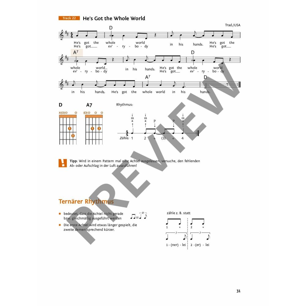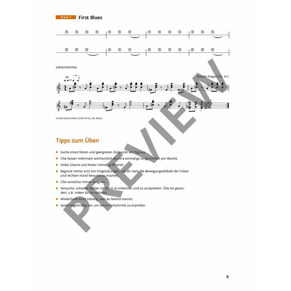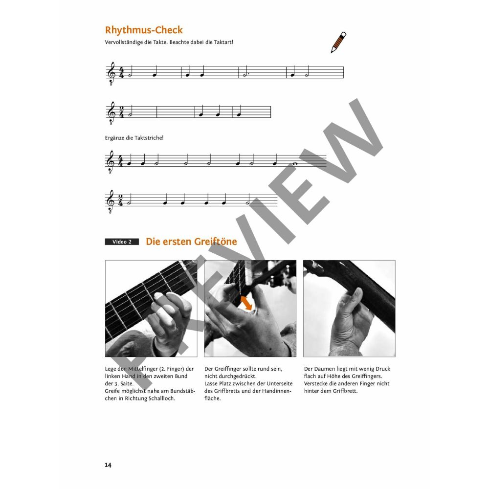 Martin Hegel führt Schritt für Schritt durch die wichtigsten Basis-Techniken auf der Gitarre: Melodiespiel (einstimmig und zweistimmig), Fingerpicking (Tirando-Spiel) und Song-Begleitung (Strumming und Picking). Die einzelnen Themen werden dabei ebenso gründlich wie ansprechend behandelt. Ganz besonders wurde auf eine große stilistische Bandbreite (Weltmusik/Klassik/Pop) und eine ansprechende Stückauswahl geachtet, die mit einer Picking- bzw. „klassischen“ Gitarrentechnik realisiert wird. Daneben sorgen Improvisationseinheiten und Noten- und Rhythmus-Checks für Abwechslung und Festigung des Gelernten.