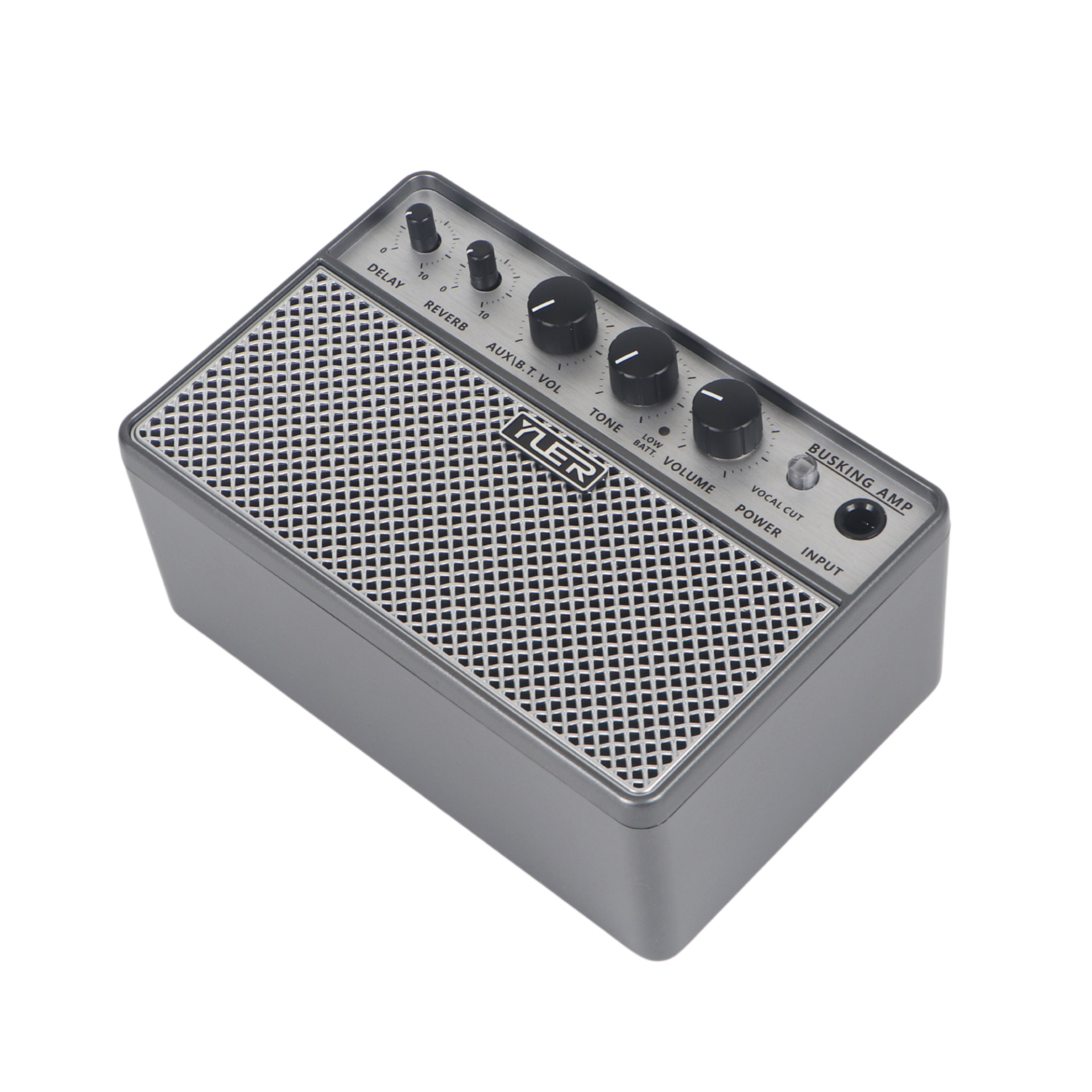 - Regler für Delay, Reverb, AUX\B.T. VOL, Tone, Volume, MIC Volume